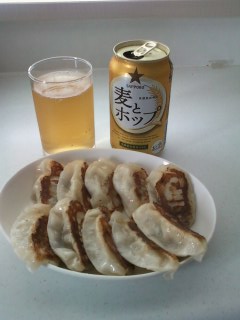 餃子とビールを買って帰ってます